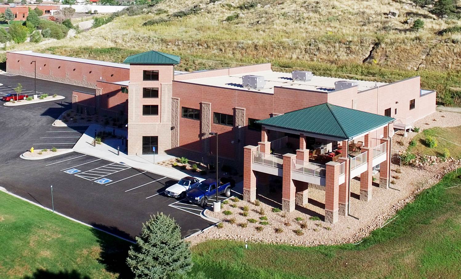 - Covered outdoor deck off of mezzanine lounge with views of Pikes Peak and the Front Range.